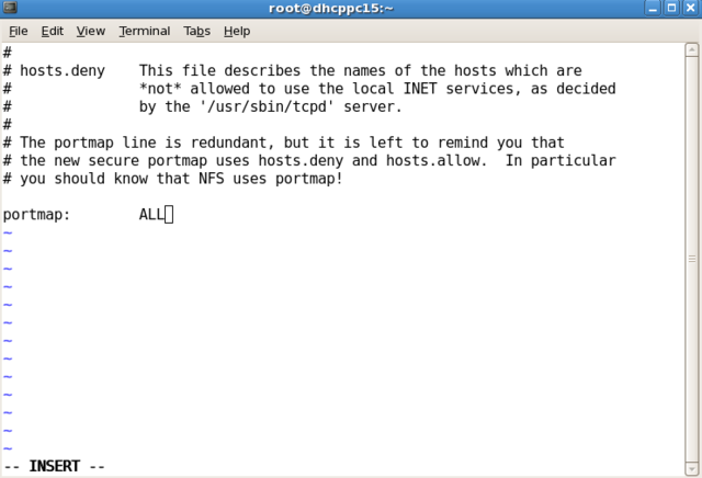 Bước 3 : Cấu hình quản lý truy cập thông qua TCP Wrapper để chi cho phép các client trong subnet 192.168.1.0/24 được sử dụng dịch vụ NFS trên NFS Server